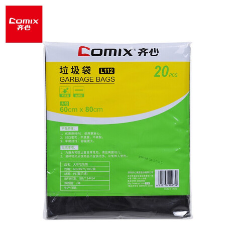 齐心 Comix 20个装 大号垃圾袋80*100cm家用/办公 黑色 L113