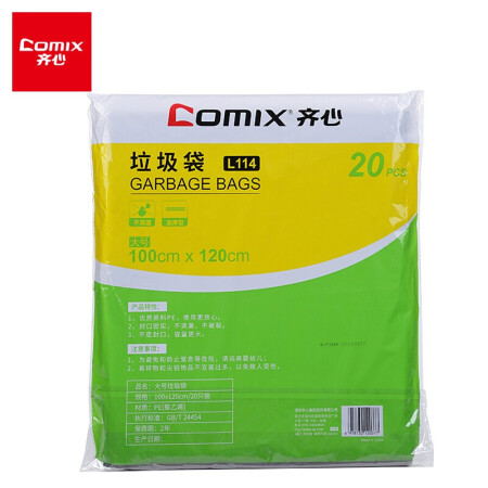 齐心 Comix 20个装 大号垃圾袋100*120cm家用/办公 黑色 L114