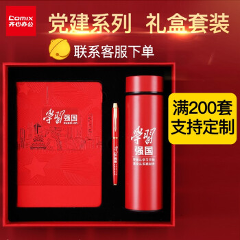 齐心(COMIX)党建套装笔记本礼盒套装带智能温度保温杯中性笔记事本礼盒装企业公司礼品定制 学习强国系列(笔记本+签字笔+显温杯)