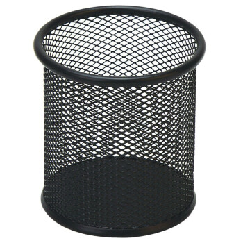 齐心 Comix 笔筒办公收纳 黑色金属铁丝网 整理文具 多功能桌面收纳摆件笔座 B2259 耐用铁网圆笔筒