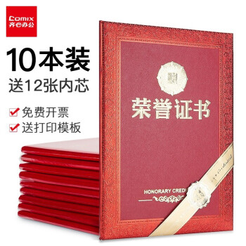 齐心(COMIX)荣誉证书奖状加厚款附赠12张证书内芯办公文具用品10本装 特种纸面荣誉证书6K C5101(10本)